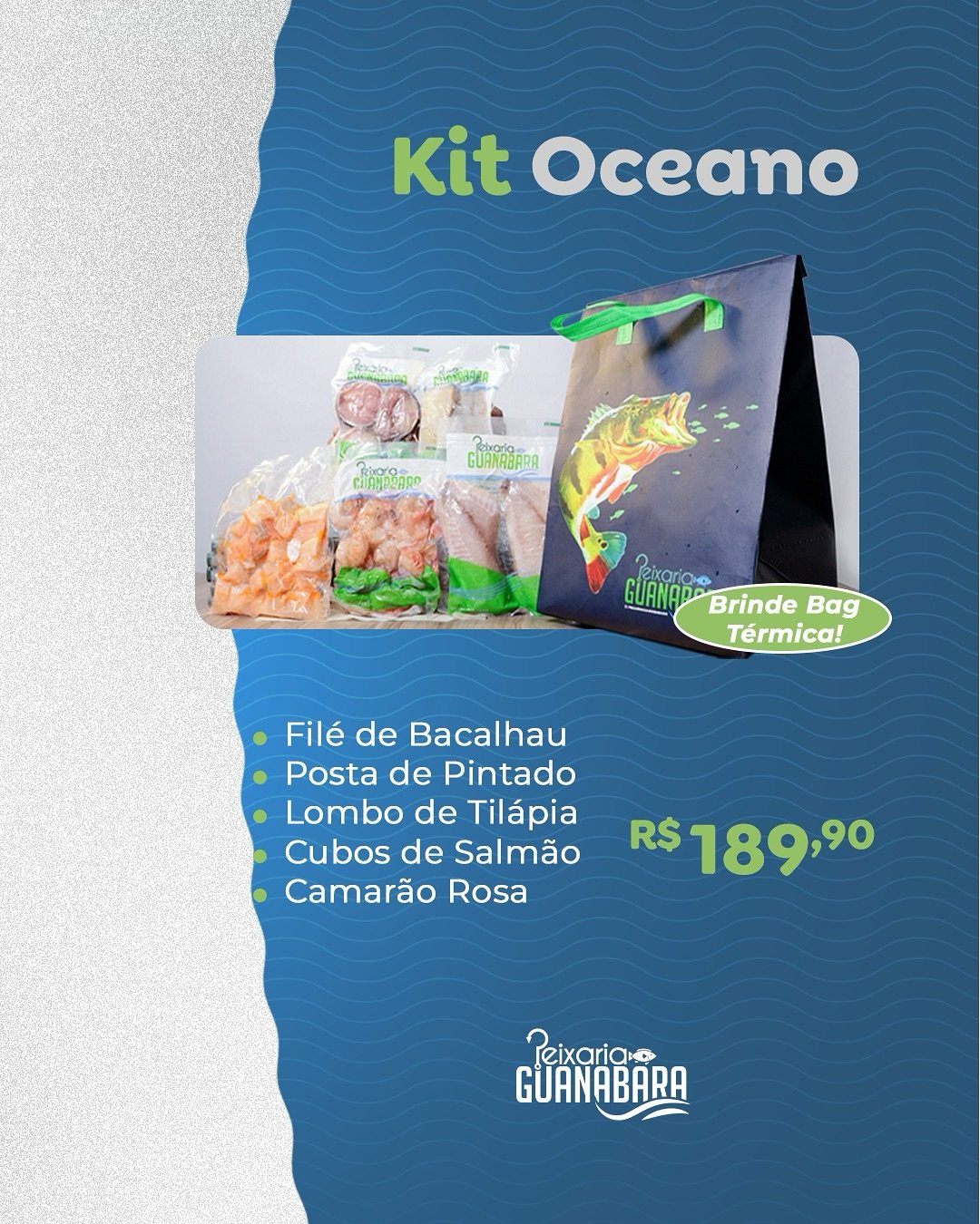 O Kit Oceano é para quem busca mais que praticidade: é para quem quer comer bem com ingredientes de alto padrão. Uma combinação fresca e selecionada com cortes nobres como filé de bacalhau, cubos de salmão e camarão rosa. Uma experiência premium direto da Peixaria Guanabara para sua cozinha.
